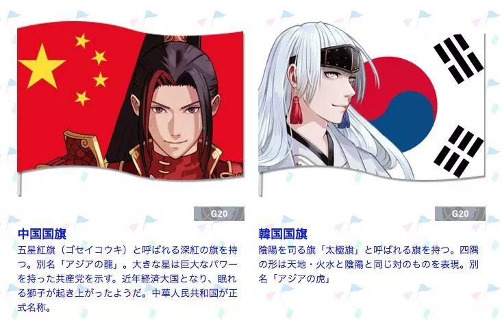 这些动漫形象均以每个的国旗为蓝本进行创作。目前,在world-flags.org网站上已经列出了部分的动漫形象,还有一些的形象正在逐步创作中。